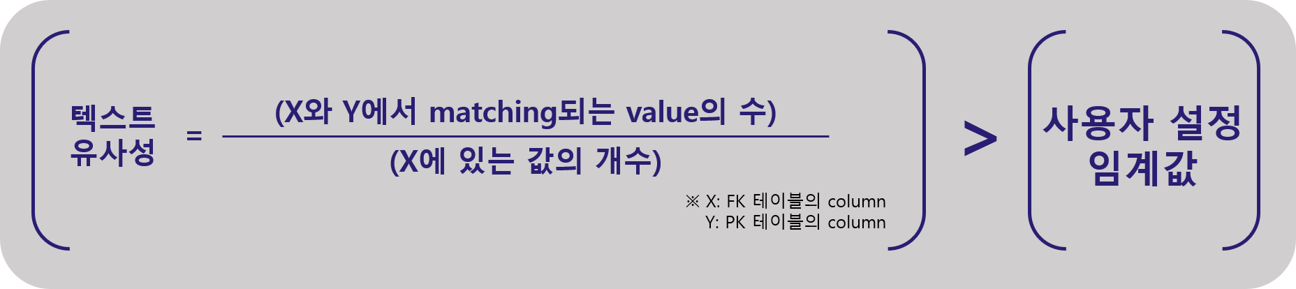 FK테이블의 칼럼 x와 PK테이블 칼럼 y의 텍스트 유사성을 계산한다 했을 때,