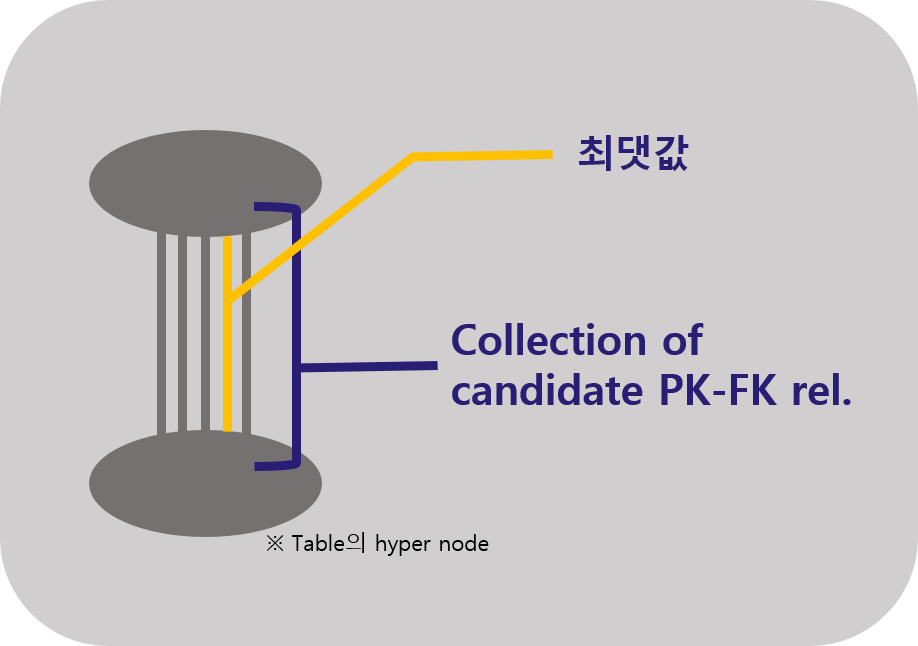이 계산을 각 칼럼에 대해 수행하게 되면 다음 그림과 같은 PK-FK 후보 집합이 생성된다.